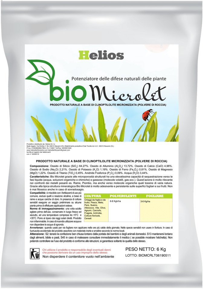 Grazie alla tipica struttura mineralogica Bio Microlet è molto adesivante e persistente sulle superfici fogliari e sui frutti. Non è mai fitotossico anche in caso di sovra-dosaggio.