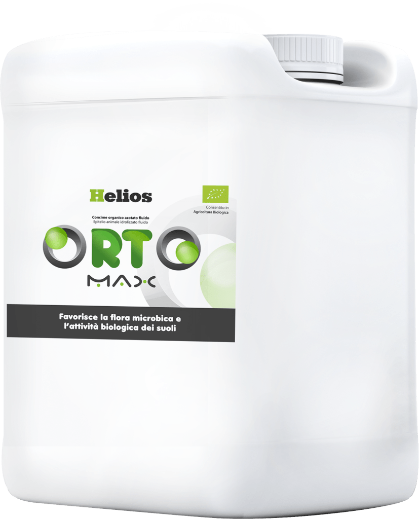 Orto Max è un concime organico azotato fluido costituito da una miscela di aminoacidi e peptidi provenienti dalla lavorazione di alcune materie prime.